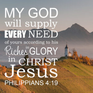 Philippians 4:19 But my God shall supply all your needs according to His riches in glory by Christ Jesus.